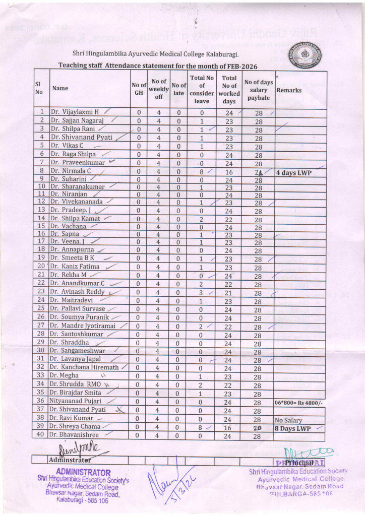 Teaching Faculty Monthly Attendance 2026